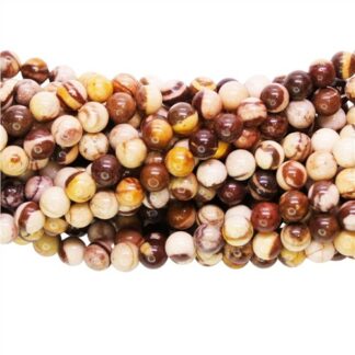 - Appearance: Brecciated Jasper beads are characterized by their mosaic-like patterns, featuring a mix of red, brown, yellow, and cream colours with veins of clear or white quartz.