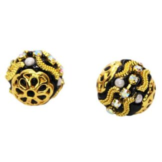 Indonesian Clay Bead 16mm Round Tibetan Caps Black/Gold