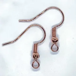 Rose gold-plated ear hooks are earring findings that feature a thin layer of rose gold plating over a base metal, such as brass or steel. They offer a trendy and feminine option for creating earrings with a rosy and warm-toned aesthetic. The rose gold plating provides a beautiful and delicate finish to the ear hooks, lending a romantic and sophisticated touch to the earrings. They are versatile and can be paired with various bead colours and styles to create elegant and contemporary jewellery designs.