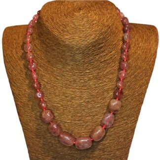 Gemstone Bead Necklace Quartz Natural Strawberry 50cm Knotted 8-12mm Graduated