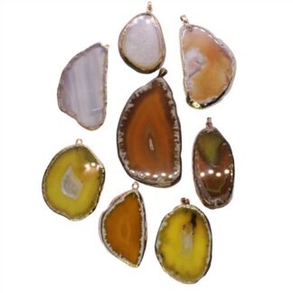 Agate Slice Pendant Gold Plated Edge 5-8cm Freeform Honey Amber