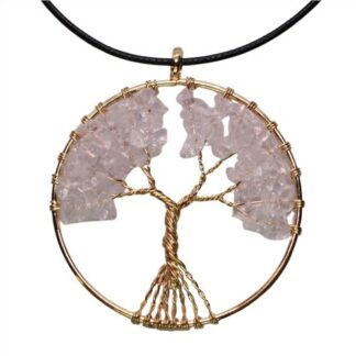 Necklace Tree of Life Clear Quartz 50mm Gold Colour Plated