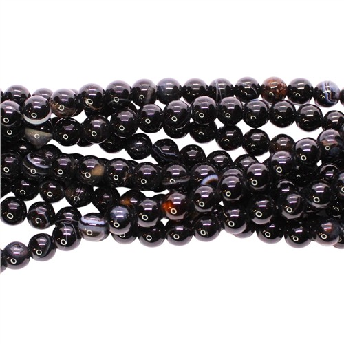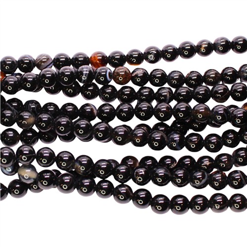 Banded Agate Black 6mm Round Beads Strand