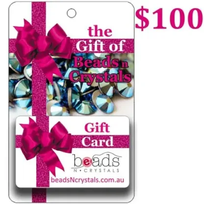 Gift card remains the property of Alexandra Bay Pty Ltd. Valid for 36 months (3 years) from date of issue. Card & credit value transferrable, not refundable. Terms & conditions available at www.beadsncrystals.com.au and may be changed at any time without notice. Card can be used in-store. Online Use: Follow the instructions printed on the physical card. To check balance, contact us. Gift cards or vouchers can not be used to purchase gift cards or vouchers. No additional restrictions, conditions, charges or fees apply to the purchase or use of gift cards or Beads N Crystals Gift Cards.