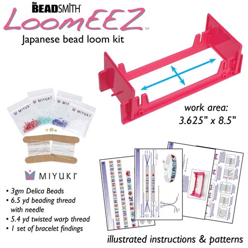 The BeadSmith LoomEEZ Miyuki Beading Loom Kit includes everything you need to get started making woven patterb bracelets.