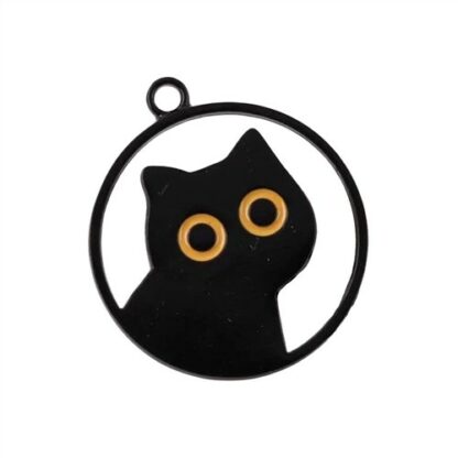 Black Cat with Amber Eye Charm 24mm Enamelled (LNCF)
