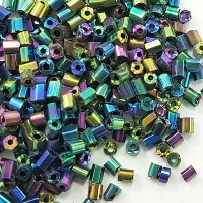 Bugle Bead 2×2.5mm Hexagon Rainbow Hematite 10g Tube