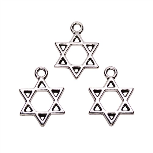 Charm Six Pointed Star 13x17mm Star of David Antique Silver
