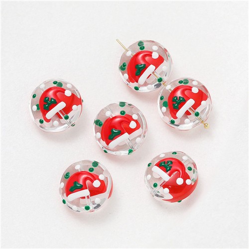 Christmas Hand Made Lampwork Bead 18mm Santa Hat Clear