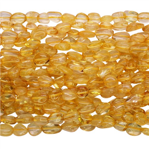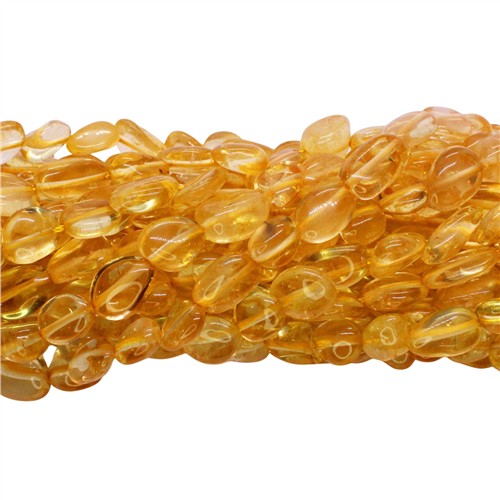 Citrine 8-10mm Irregular Oval Beads Strand, approx 39 beads on strand, Please note that beads may be slightly lighter than depicted in the photo as a result of the coloured cord upon which they are strung.