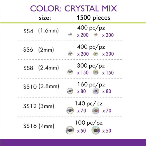 Crystal FX Rhinestone Assortment Crystal and Crystal AB 1500pc Pack