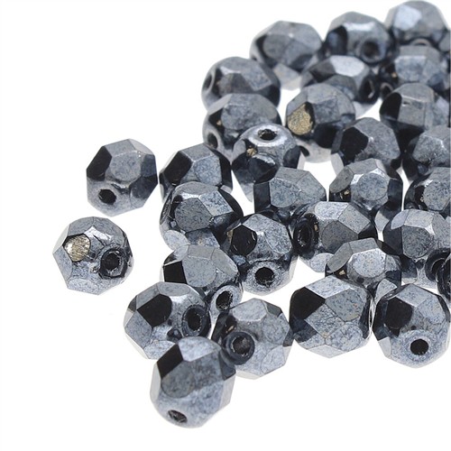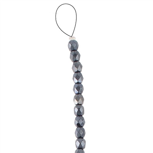 Czech Fire Polished Round 4mm Jet Hematite 40pc Strand