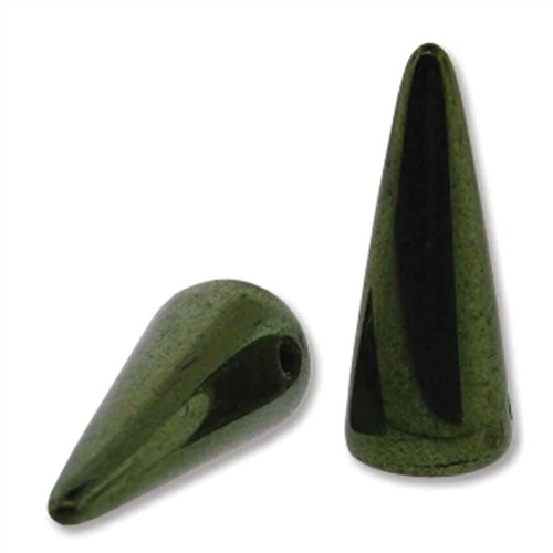 Czech Spike Beads 5x13mm Jet Green Red Lustre 25pc Strand