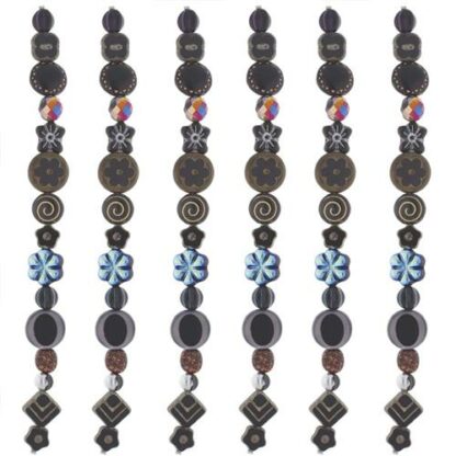 Czech Table Cut and Pressed Beads Black Mix Strand