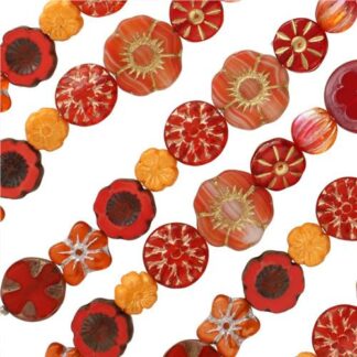 Czech Table Cut and Pressed Beads Red Mix Strand