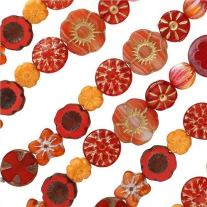 Czech Table Cut and Pressed Beads Red Orange Mix Strand