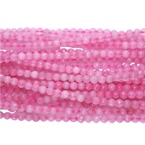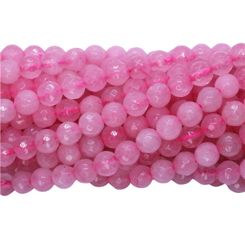 Dyed Pink Jade Faceted 6mm Round Beads Strand
