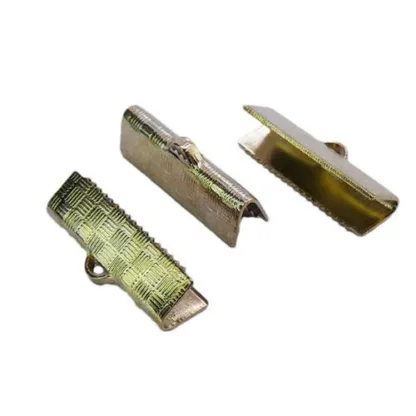 Flat Leather/Ribbon End 20mm Antique Pewter Gold Textured