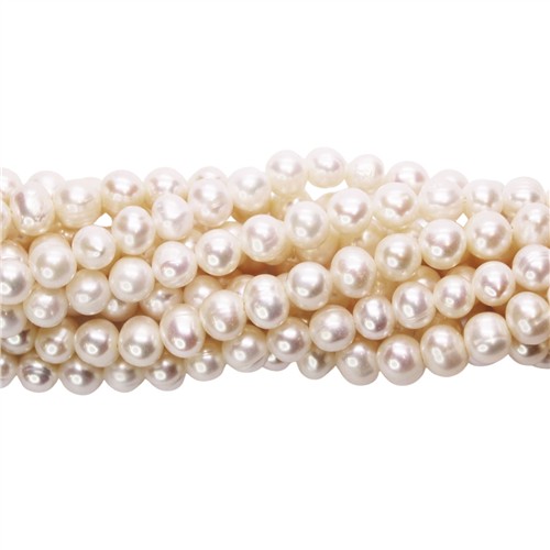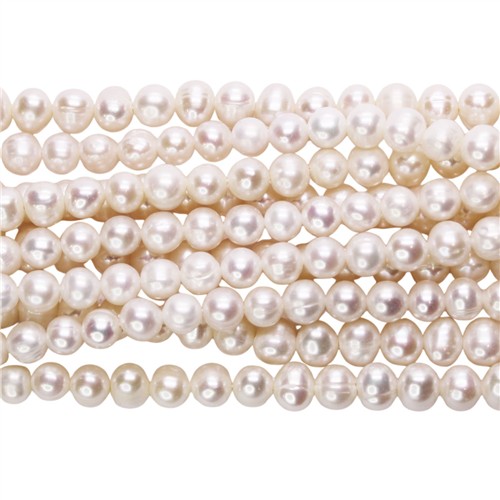 Freshwater Pearl Oval Cream White 6-7mm Beads Strand approx 55 beads on strand with growth ring marks and cloud.