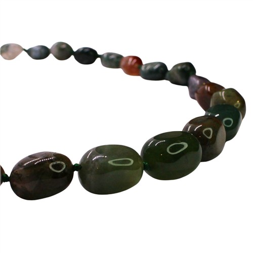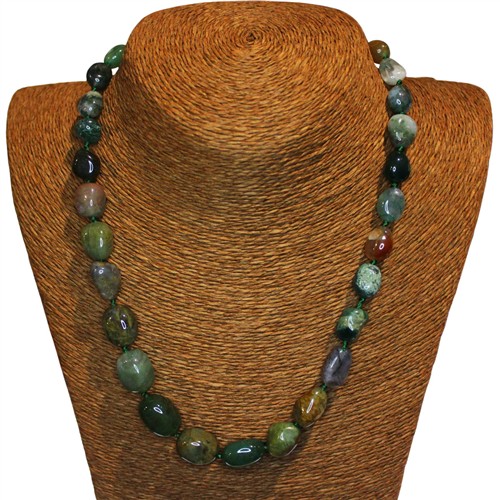 Gemstone Bead Necklace Moss Agate 50cm Knotted 8-12mm Graduated