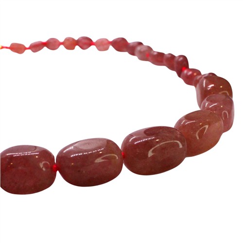 Gemstone Bead Necklace Quartz Natural Strawberry 50cm Knotted 8-12mm Graduated