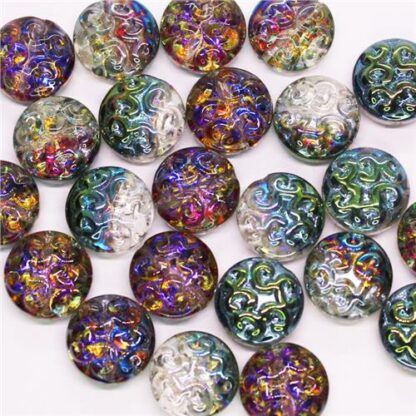 Glass 14mm Coin Pressed Swirl Spring Time Bead Loose