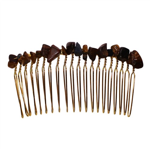 Hair Combs 75x37mm Tiger Eye Gemstone Chips Gold Plated