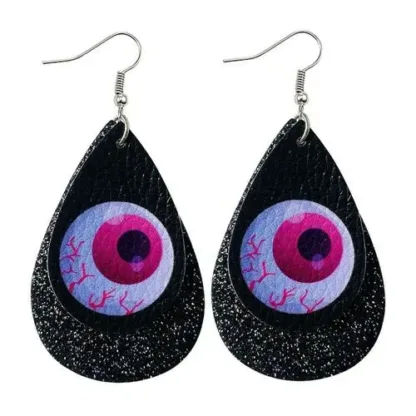 Halloween Earrings Eyeball PU Leather Drop 38x78mm Pair