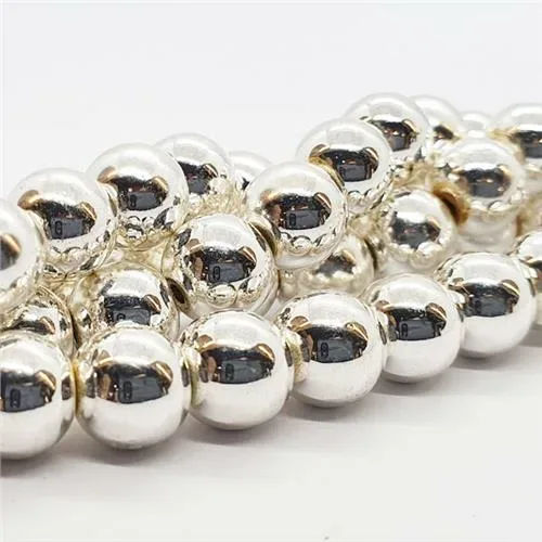 Hematite Plated Bright Silver 8mm Round Beads Strand