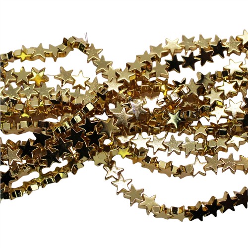 Hematite Plated Gold 7x2mm Star Beads Strand