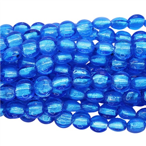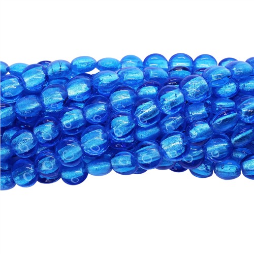 Lampwork Glass 14mm Coin Silver Foiled Beads Strand Aqua