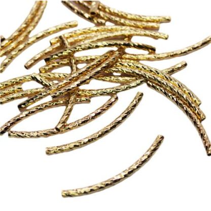 Metal Hollow Curved Tube 2x30mm Textured Gold Plated