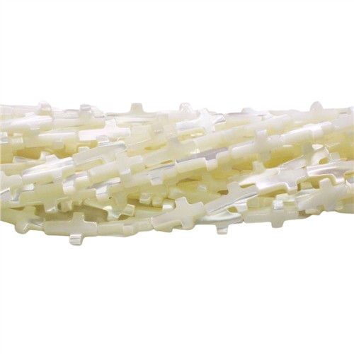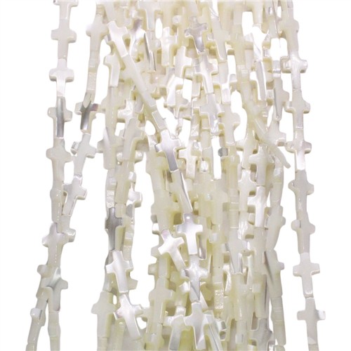 Mother of Pearl Shell 8x13mm Handcarved Cross Beads Natural White