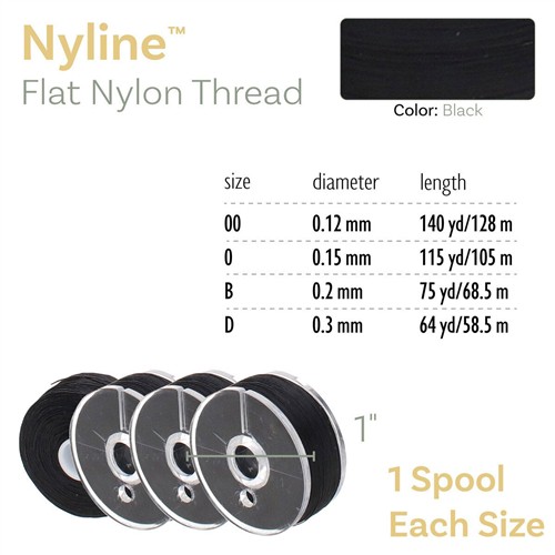 NYLINE Flat Nylon Beading Thread – Black Assorted Sizes – 00, 0, B and D