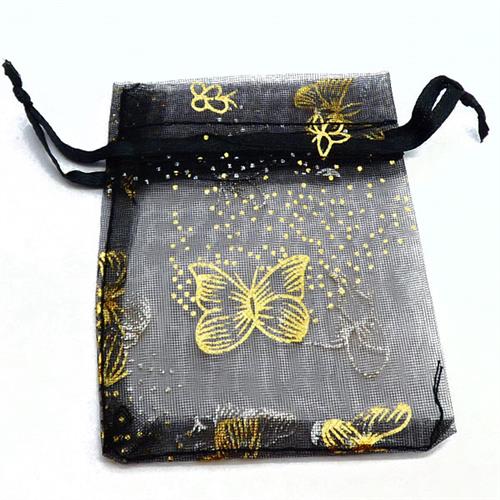 Organza Bag 7x9cm Black with Drawstring Golden Butterfly Foil Print
