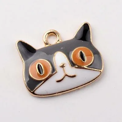 Pendant Cat Enamel 14x22mm Happy Gold