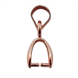 Add a warm, modern touch to your pendants with this 6x15mm rose gold pinch bail. Designed for top-drilled beads and pendants, it provides a secure and elegant way to suspend your focal piece without the need for glue.