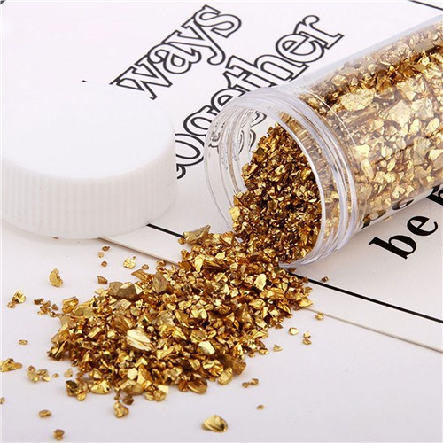 These metallic gold chips look like gold filings or small gold nuggets. Perfect for use in resin or polymer clay art, or in floating lockets.