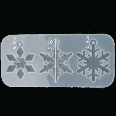 Silicone Resin Mold – Christmas Snowflakes x3 – Makes three different Snowflake shapes at approximately 5.2-5.6cm each. 7mm total Mold thickness.