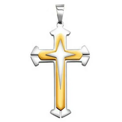 Titanium Pendant 30x48mm Cross Three Layer Gold