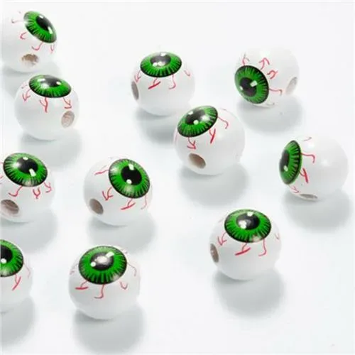 White bead with detailed eyeball design. Great for Halloween jewellery.